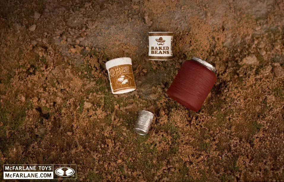 Die bewegliche Figur des Water Walkers kommt mit Standbase, drei Konservendosen und einem Keramik Gefäß.